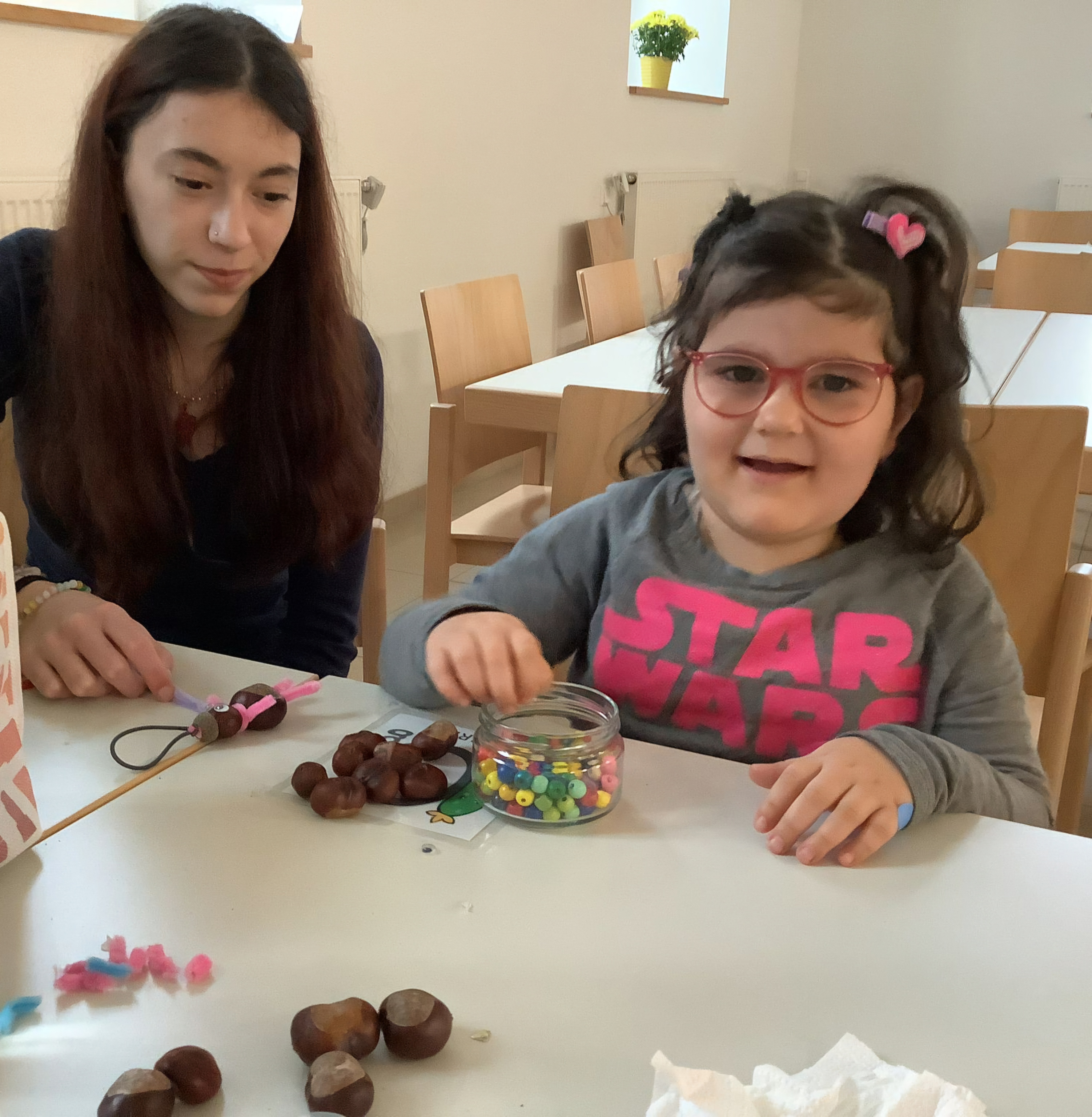 Unser Angebot stand unter dem Motto „Basteln mit Naturmaterialien“, den Kindern standen Kastanien, Blätter, kleine Stöcke, Eicheln und verschiedene…