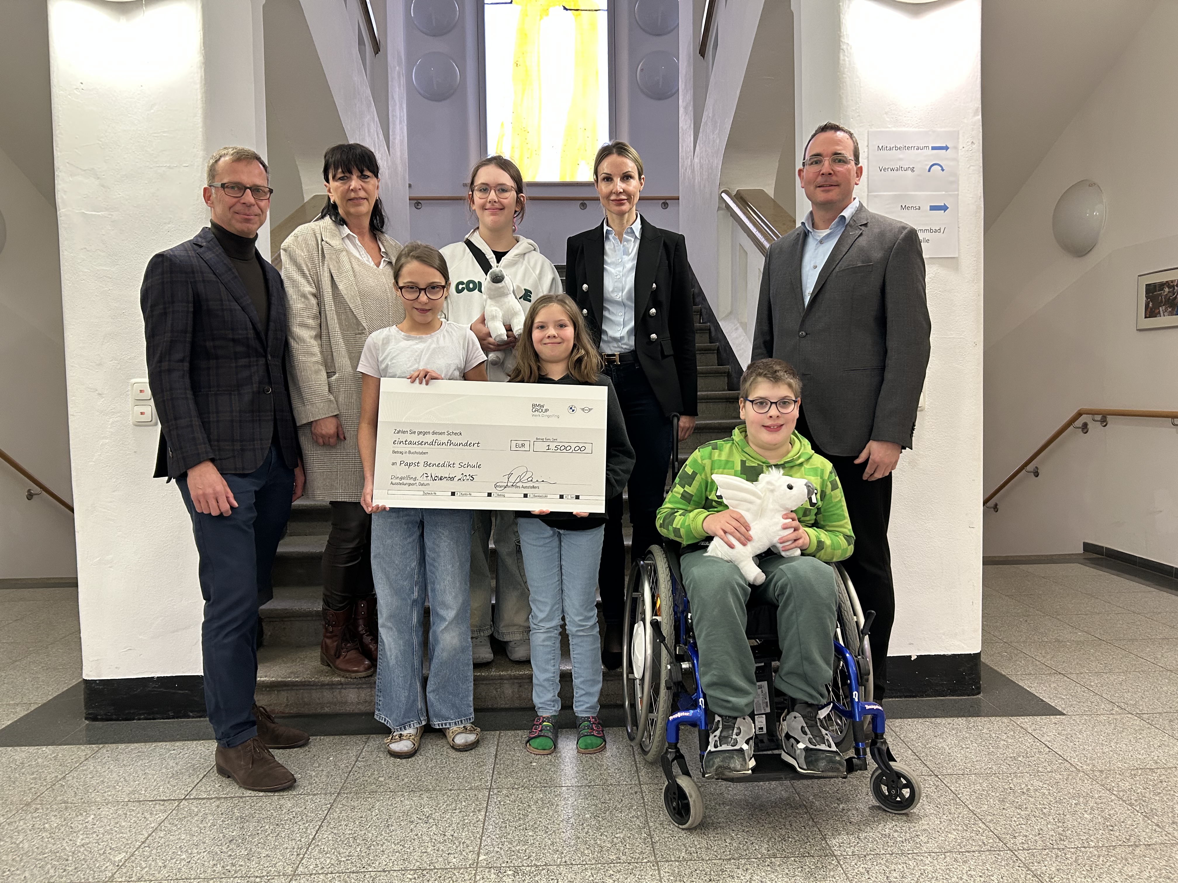 Wir freuen uns sehr über eine Spende. Die Firma BMW hat uns 1500 Euro geschenkt. Das ist viel Geld.