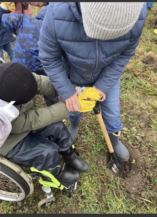 Gemeinsam mit dem Wasserwirtschaftsamt nahmen einige Klassen und SVE-Kinder der PBS an einer Pflanzaktion in der Nähe des Flugplatzes Wallmühle teil. Dort wurde an zwei Tagen zusammen eine heimische Hecke gepflanzt. Wie schon im HSU Unterricht gelernt schafft die Hecke Nahrung, Schutz- und Brutplätze für Vögel, Insekten und Kleinsäuger. Sie schützt vor Lärm und Wind, filtert Staub- und Schadstoffe und belebt und strukturiert die Landschaften.