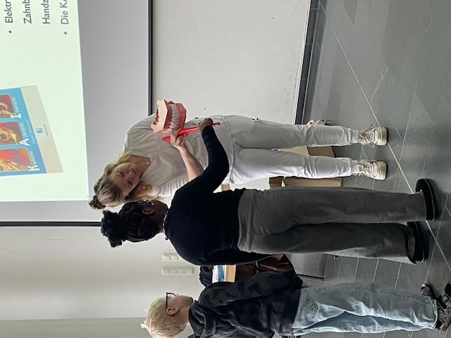 Besonders praxisnah war das gemeinsame Üben des richtigen Zähneputzens an einem Zahnmodell, bei dem die Kinder ihr Wissen direkt anwenden konnten. Mit großem Interesse und vielen Fragen beteiligten sich die Schülerinnen und Schüler an den Gesprächen und Übungen.