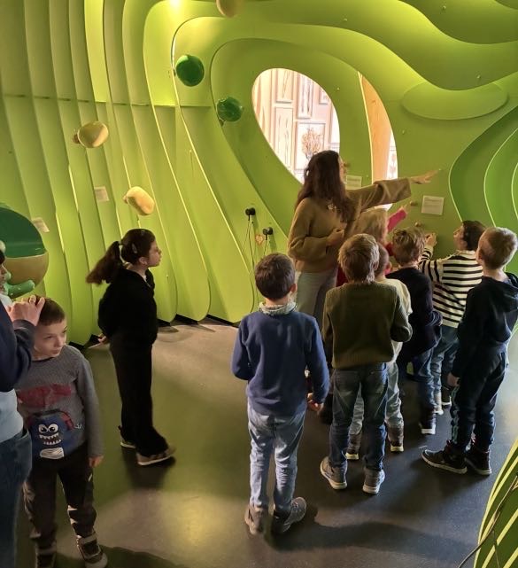 Die Klassen 1A/2 und die 2/3 machten sich am Donnerstag zu Fuß auf zum Straubinger Nawareum um sich dort mit dem Thema nachhaltigen Ernährung zu beschäftigen. Auf einer spannenden Reise durch die Abteilung des Museums, welche sich mit Pflanzen und Nachhaltigkeit beschäftigt, wurde ein kleiner Film über die faszinierende Tier- und Pflanzenwelt unserer Erde gezeigt aber auch auf die Ausbeutung dieser durch den Menschen eingegangen. Beim Betrachten eines wunderbaren Satellitenbildes unserer Erde wurden einzelne Länder und Kontinente genauer unter die Lupe genommen. Sodann führte der Weg direkt durch eine Pflanzenzelle und schließlich zu einer beeindruckenden Wand mit gepressten Pflanzen aller Art und Größen. Am Ende der Führung durften dann in Gruppen noch Rätsel zur Nachhaltigkeit gelöst werden. Im anschließenden workshop wurde nochmal bewusst gemacht, wie weit manche Obst- und Gemüsesorten reisen müssen, um bei uns anzukommen. Außerdem lernten die Kinder bei einem Bingospiel heimische Obst- und Gemüsesorten kennen. Natürlich gabs auch für alle die wollten noch leckere Brote mit Kräuterbutter oder Spinataufstrich.