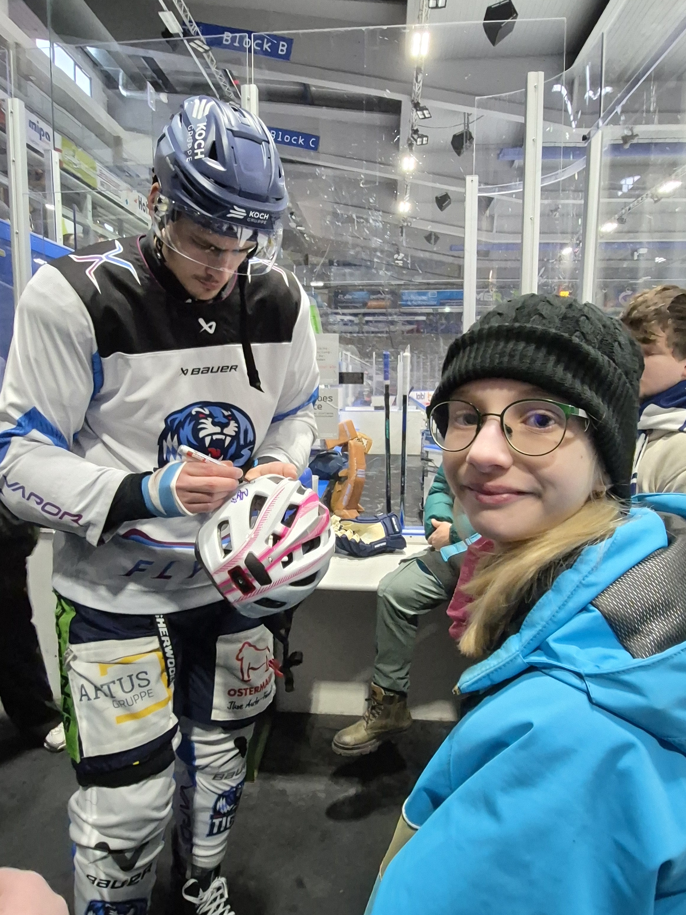 - Die Tigers besuchen: Wir haben den Profi-Eishockey-Spielern beim Training zugeschaut. Wir haben auch Autogramme bekommen.