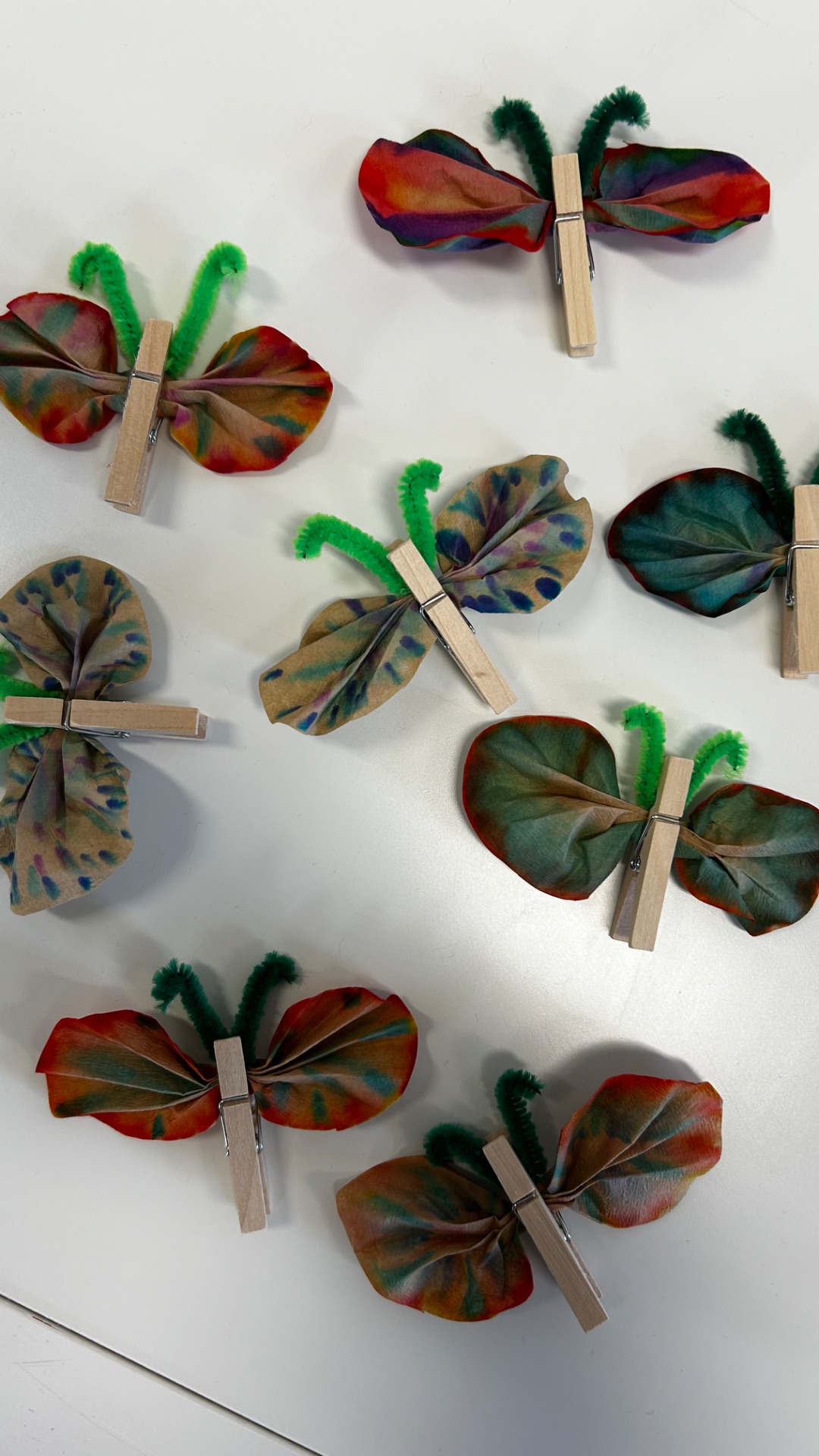 Die Gruppe A beschäftigte sich diese Woche mit einem frühlingshaften Bastelangebot. Passend zur Osterzeit gestalteten die Kinder bunte Schmetterlinge aus Kaffeefiltern.