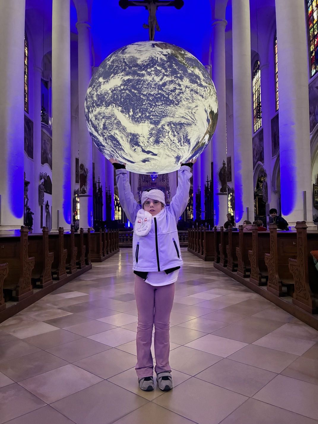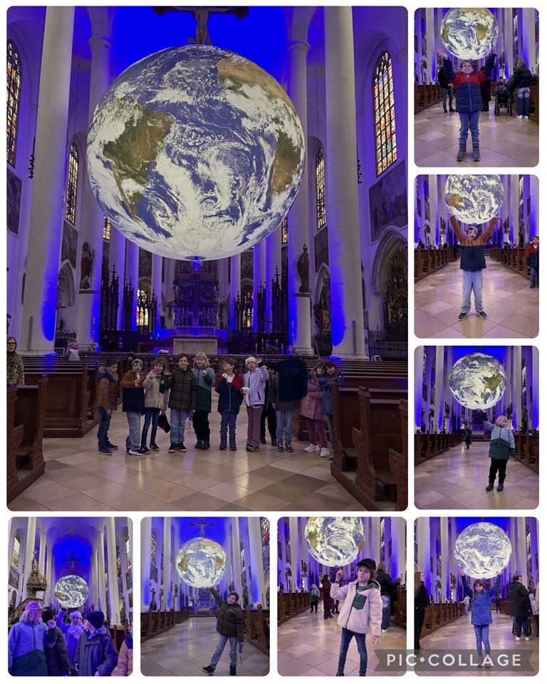 Heute haben wir mit unserer Klasse die GAIA-Wanderkunstausstellung in der Basilika St. Jakob besucht. Die riesige Darstellung der Erde hat uns zum Staunen gebracht. Wir konnten unseren Planeten aus einer ganz neuen Perspektive sehen und darüber nachdenken, wie besonders und schön unsere Erde ist. Gemeinsam haben wir erkannt, wie wichtig es ist, gut auf sie aufzupassen und verantwortungsvoll mit ihr umzugehen.