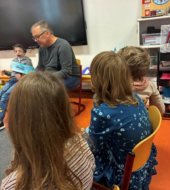 Am Freitag, 21.11. kamen sieben erfahrene und engagierte Vorleserinnen und Vorleser in unsere Schule, um einigen SVE-Gruppen und Klassen eine besondere Lesestunde zu schenken. Die Aktion „Große lesen für Kleine“ richtet sich an jüngere Kinder und soll frühzeitig die Freude am Lesen, die Fantasie und das Textverständnis fördern.