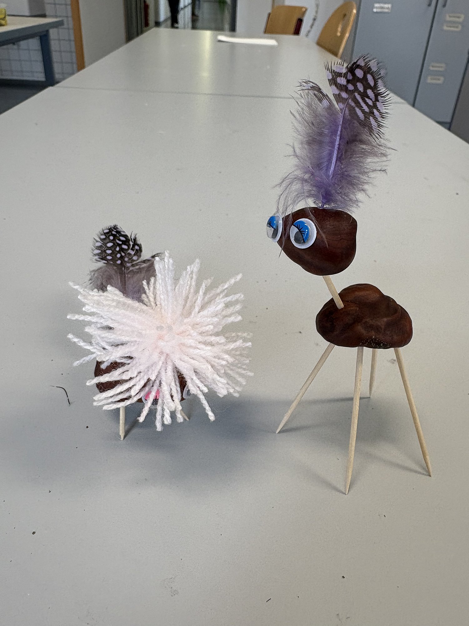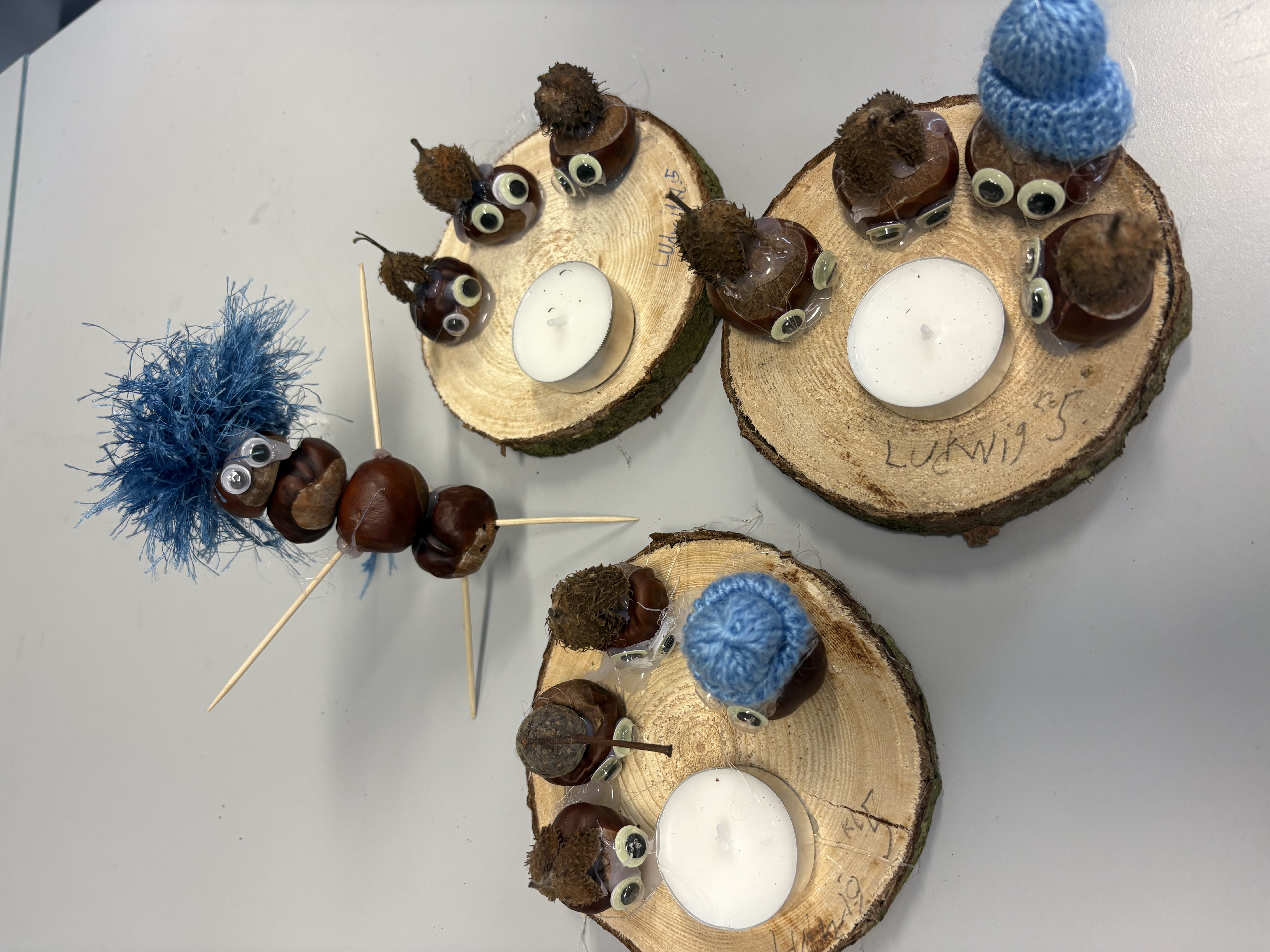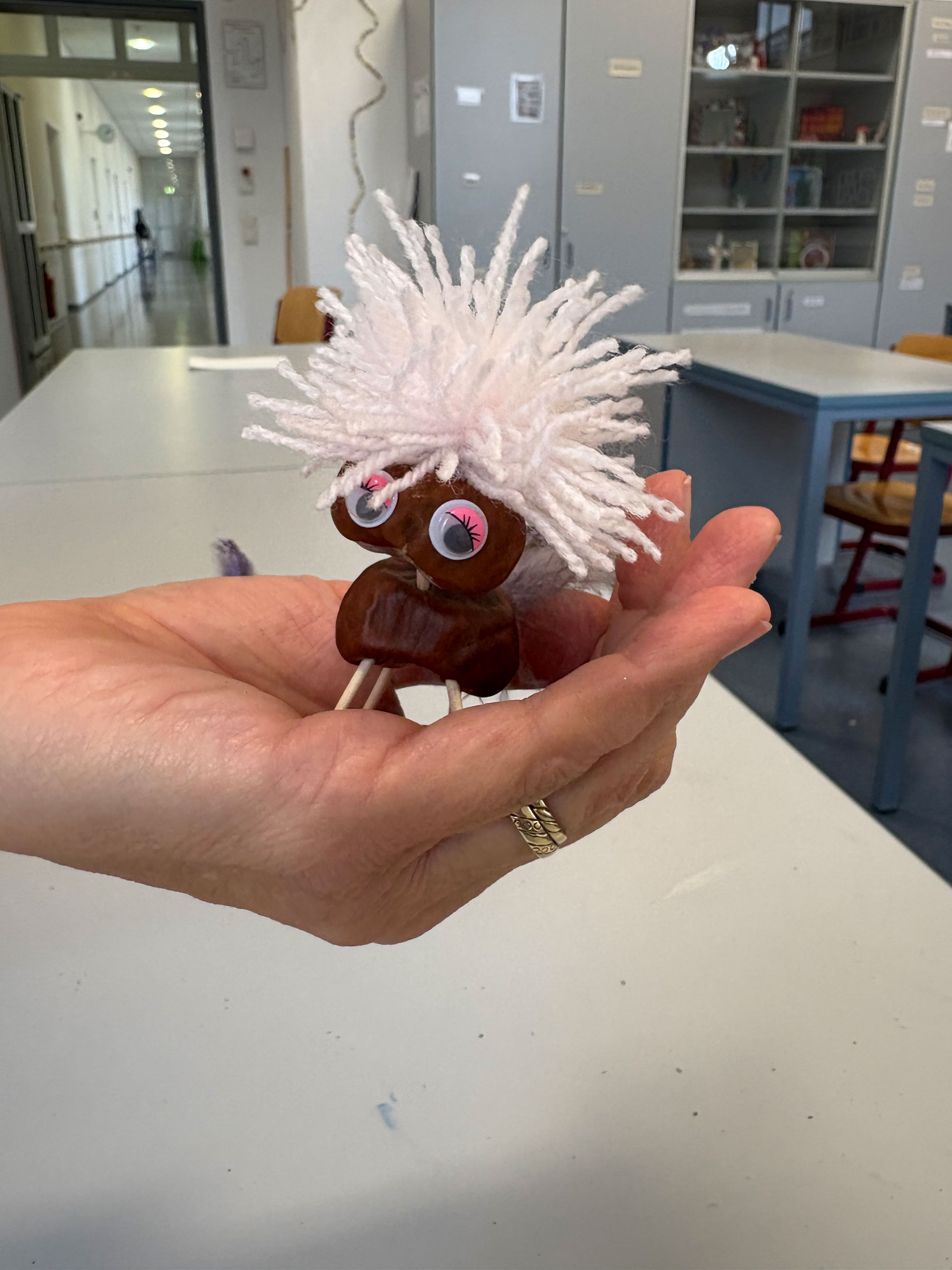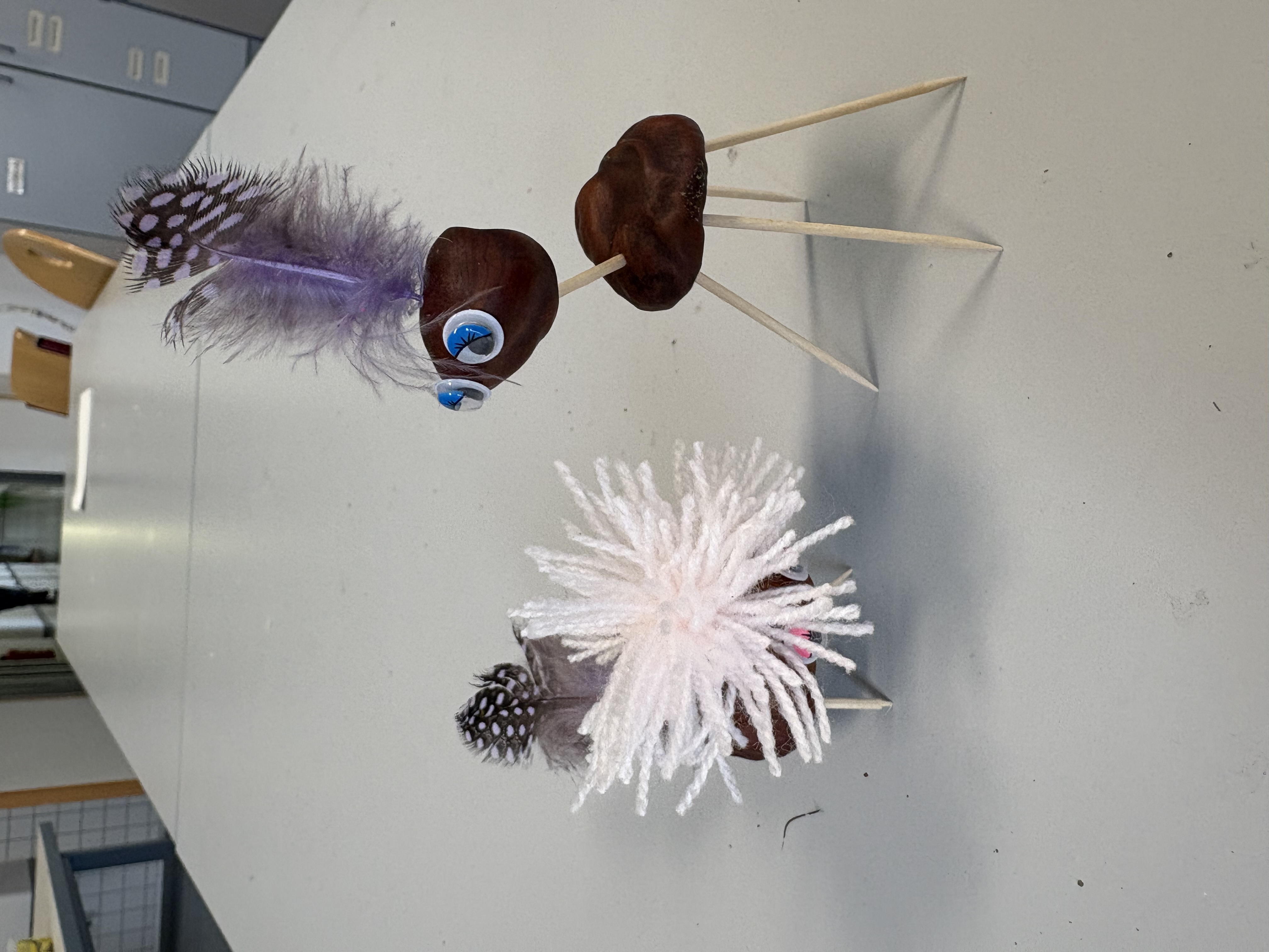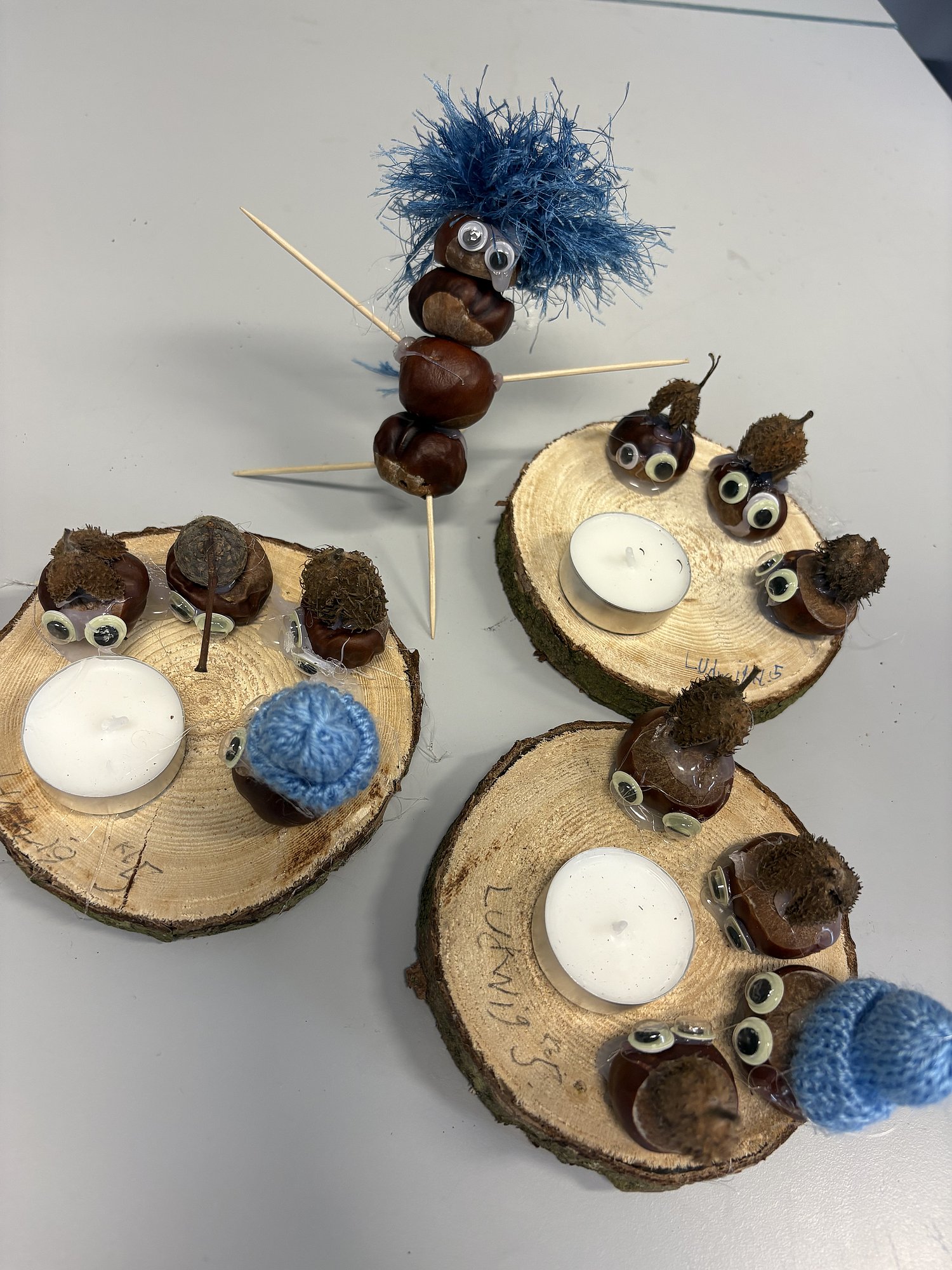 Die Klasse 5 hat in Werken bunte lustige Kastanienmännchen gebastelt. Es hat allen viel Spaß gemacht!