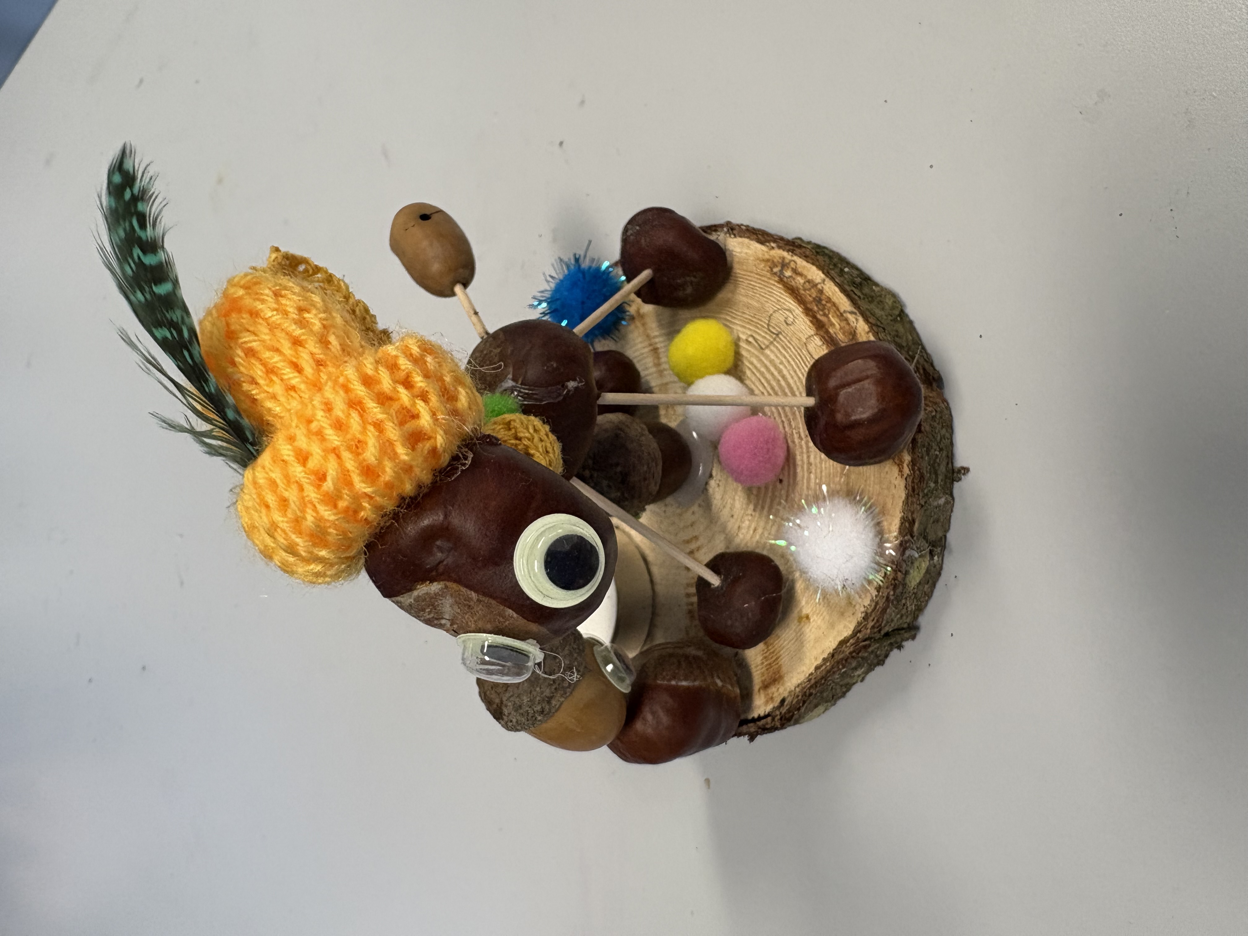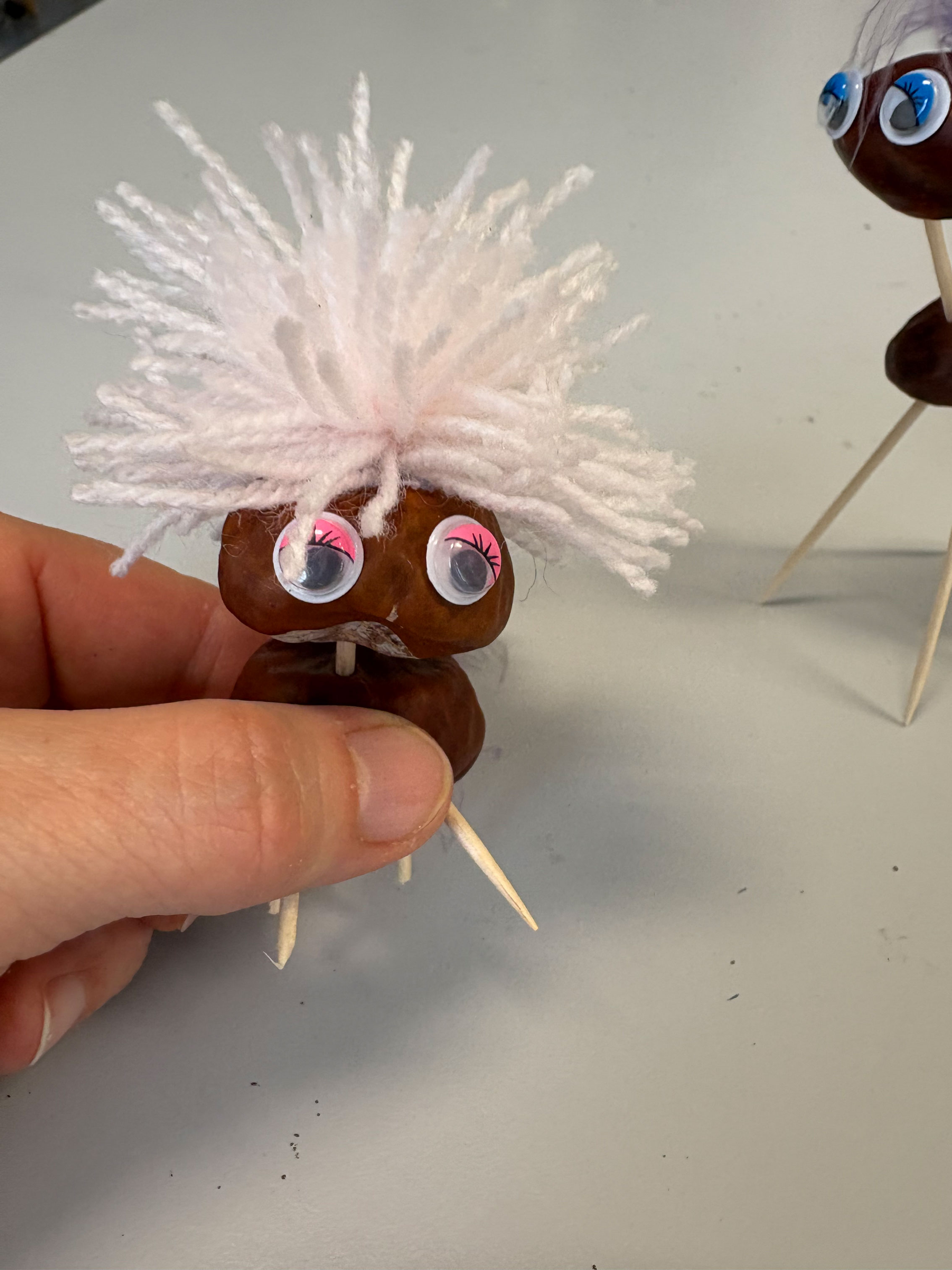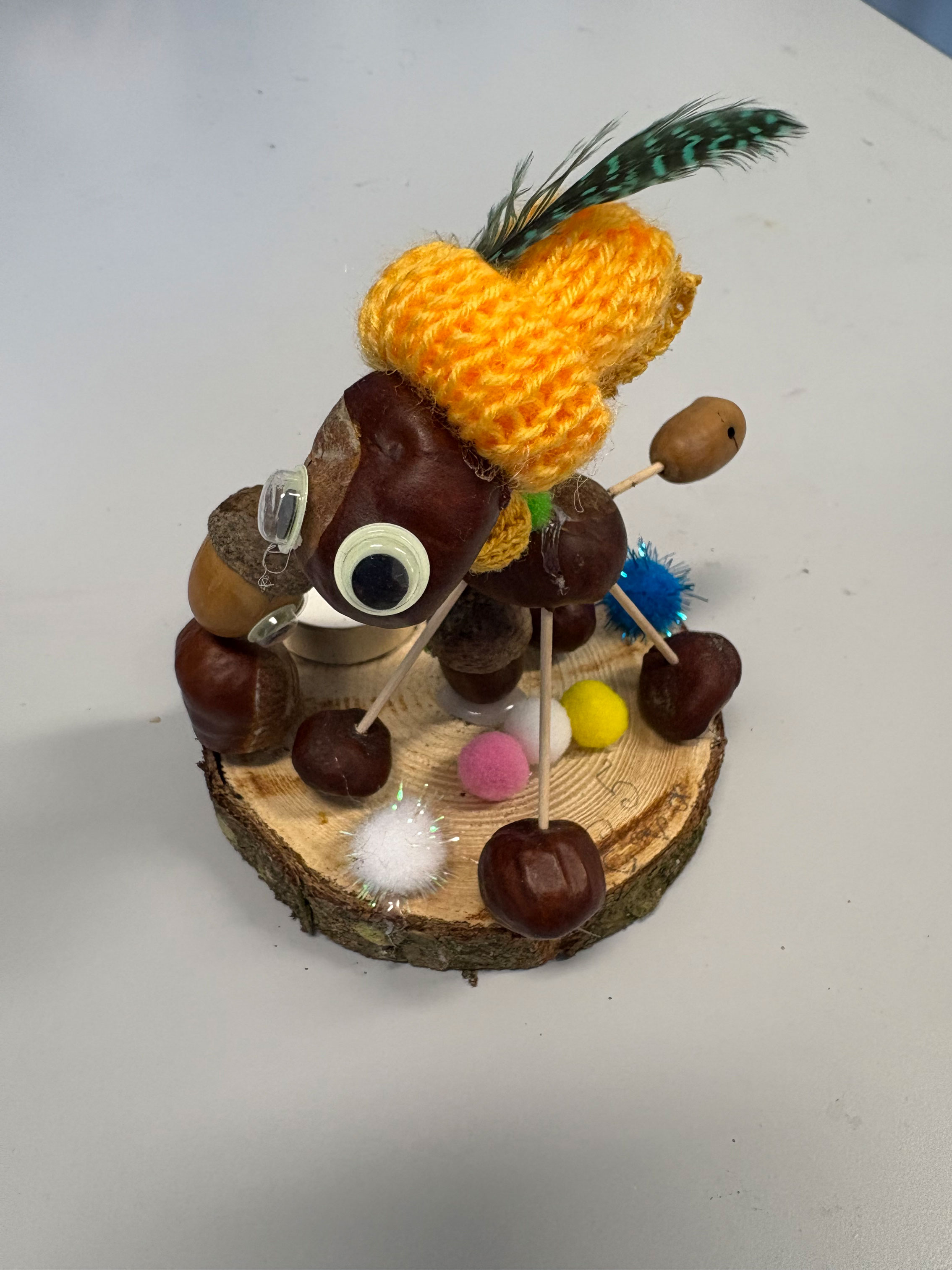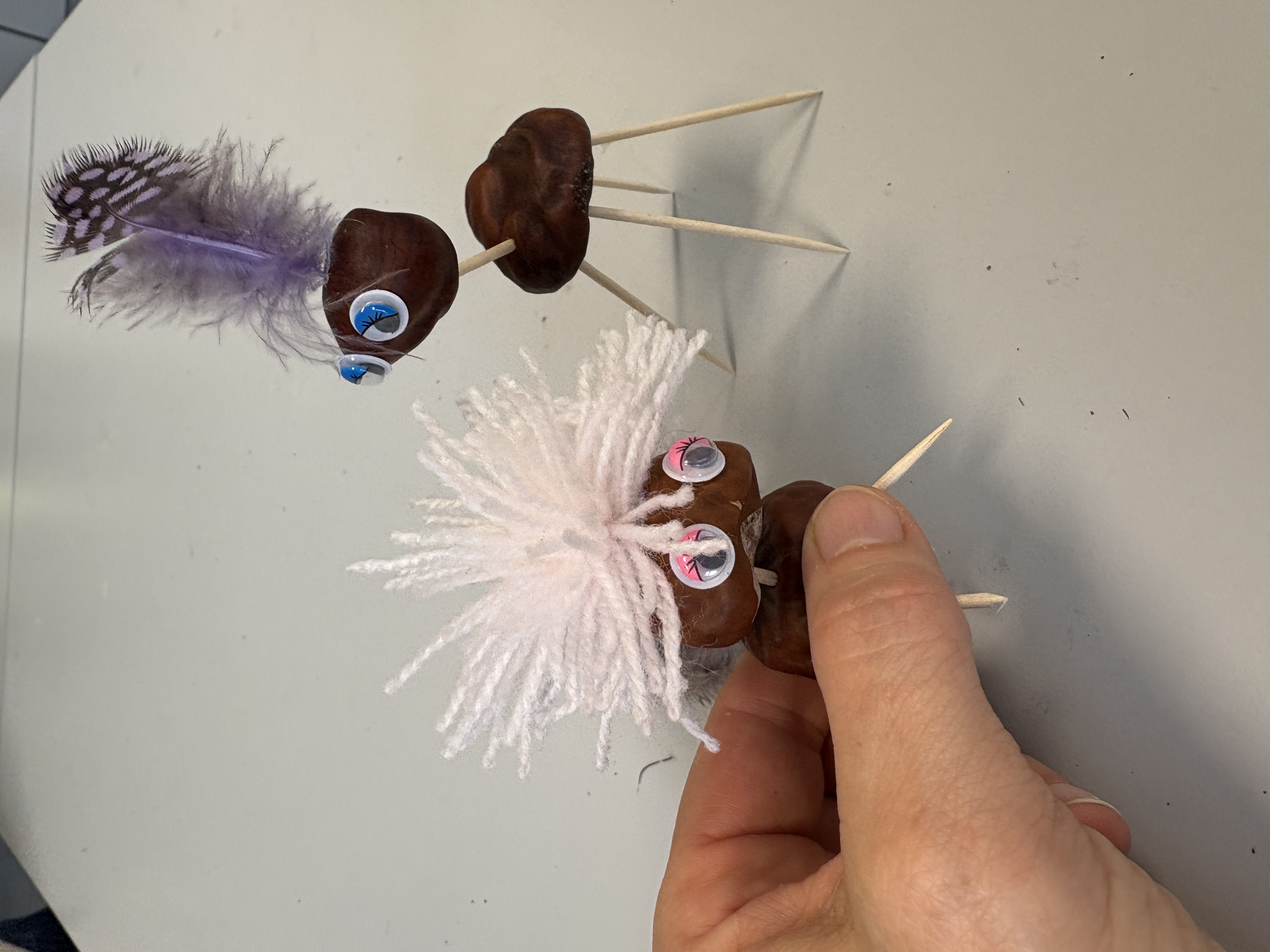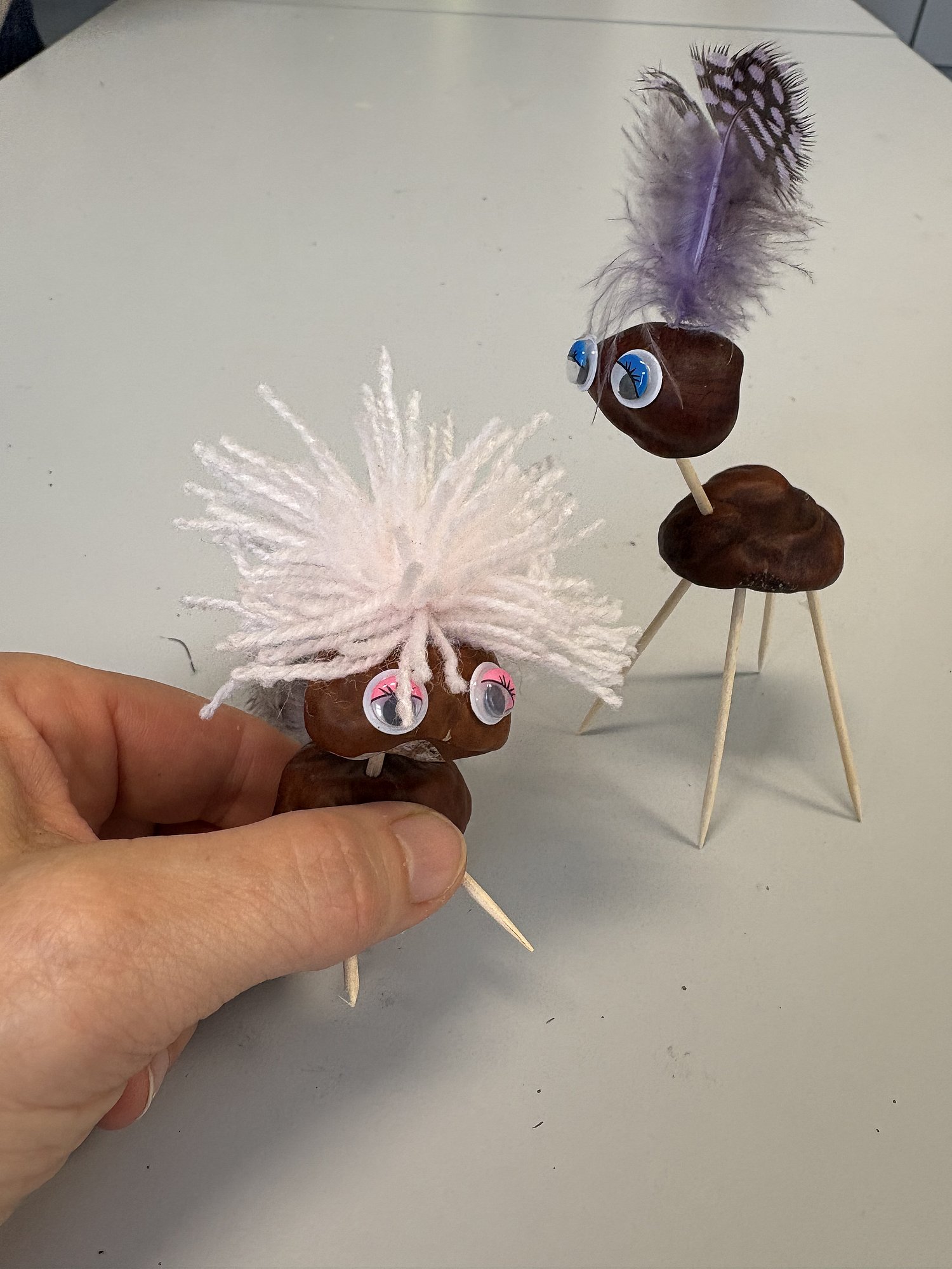 Die Klasse 5 hat in Werken bunte lustige Kastanienmännchen gebastelt. Es hat allen viel Spaß gemacht!