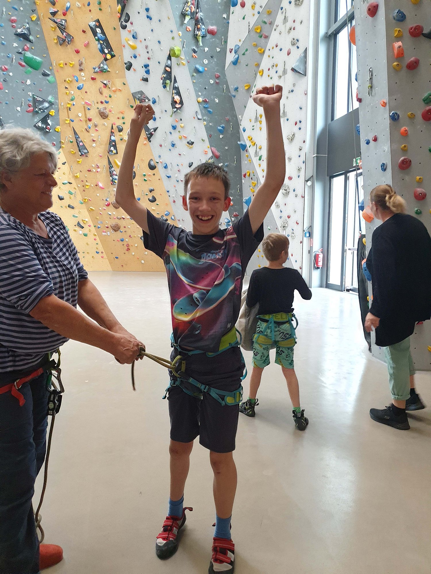 Wir, die Klasse 5, hatten am 17.07.25 ein spannendes Abenteuer. Wir waren in der Deggendorfer Kletterhalle klettern. Wir sind mit dem Bus zuerst mal nach Deggendorf gefahren. Als wir in der Kletterhalle angekommen sind, haben wir Bärbel, Georg und Hans kennen gelernt (Hans ist Frau Kappls Vater). Wir haben uns dann mit der Kletterausrüstung ausgestattet und aufgewärmt. Nachdem Aufwärmen gingen wir zu der Kletterwand. Sophie war die Mutigste und hat den Anfang gemacht. Danach ist Kevin hochgeklettert und hat es als Erstes bis ganz nach oben geschafft (15 METER!). Doch auch die Anderen, Tobias, Nikolay, Lennox, Florian und viele mehr haben uns allen gezeigt, dass sie bis nach oben klettern können. Es sind wirklich alle geklettert, selbst Angela und Frau Kappl. Wir konnten am Kletterautomaten, an den Wänden mit unseren Trainern oder im Boulderbereich klettern. Jeder war mutig. Und zum Schluss haben wir Pizza gegessen und als Überraschung kam der große Hund von Bärbel noch dazu. Er hätte wohl auch gern Pizza gehabt. Dann haben wir Tschüss gesagt und es ging wieder zurück.