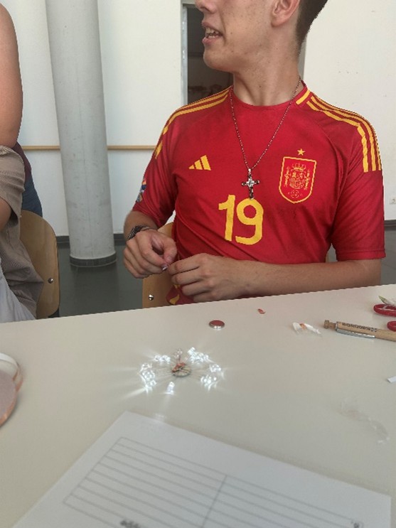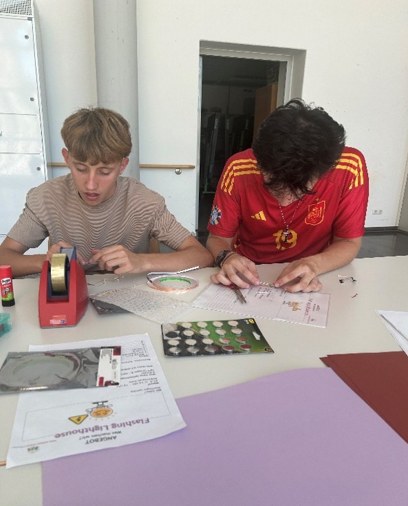 In diesem Nachmittagsprojekt dreht sich alles um das Zusammenspiel von Strom und kreativer Gestaltung. Mithilfe von Kupferklebeband, Knopfbatterien und kleinen LED-Lämpchen konnten sich unsere Schüler kreativ mit Gestaltung und dem Stromkreis beschäftigen. Wie wird Strom geleitet? Wie viel Lämpchen kann eine Knopfbatterie allein versorgen usw.? Die Schüler der 9. Klasse konnten sich auch über ihr Fachwissen austauschen und fachsimpelten darüber, dass Rote LED`s eine Durchlaufspannung von etwa 1,6, bis 2,2 Volt haben, während z.B. Blaue und Weiße LED`s oft eine höhere Durchlassspannung von 2,7 bis 3,5 Volt benötigen. Es war ein schöner Austausch.