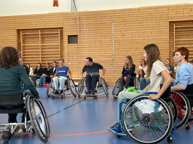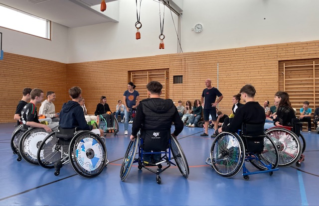 Heute besuchte uns die Klasse 8a des Veit-Höser-Gymnasiums Bogen. Die Schülerinnen und Schüler ließen sich interessiert durch das Schulhaus der PBS führen und durften nach einer kleinen Stärkung an einem Rollitraining mit Judith und Robert teilnehmen.