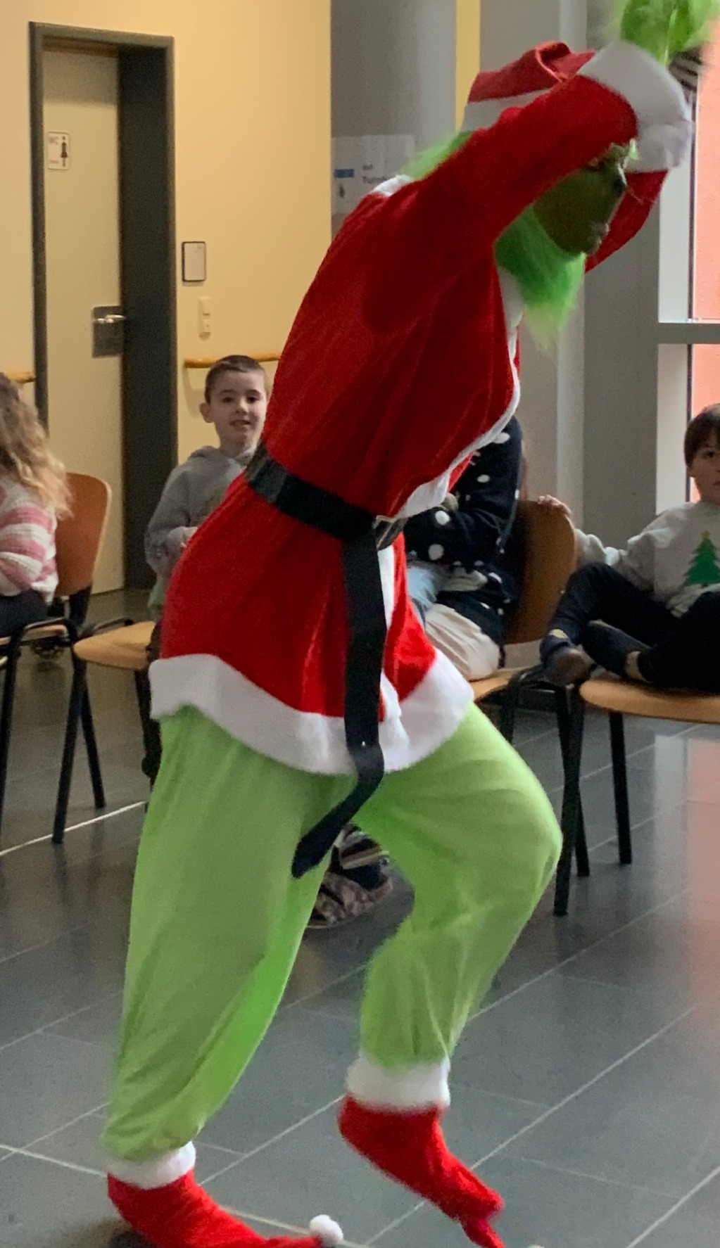 Ein ganz besonderes Highlight war zweifellos der Auftritt der SVE 3. Die gesamte Gruppe hatte sich eine aufwendige Performance ausgedacht und führte diese mit großer Begeisterung auf. Mit einem echten Weihnachtsbaum, einem Grinch-Kostüm und vielen liebevollen Details zogen sie alle Anwesenden in ihren Bann. Der Applaus und die strahlenden Gesichter zeigten, wie sehr diese gemeinsame Aktion geschätzt wurde.